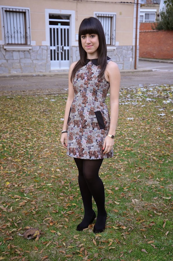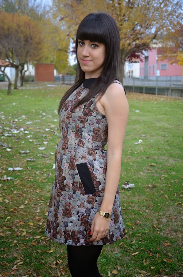 Seguimos con looks en tonos tierra, y no podía faltar este vestido con estampado de ositos de peluche muy de mi estilo que es de la tienda de moda online Oasap.