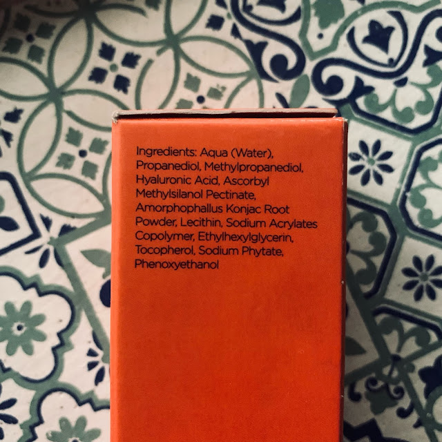 Aqua (Water), Propanediol, Methylpropanediol, Hyaluronic Acid, Ascorbyl Methylsilanol Pectinate, Amorphophallus Konjac Root Powder, Lecithin, Sodium Acrylates Copolymer, Ethylhexylglycerin, Tocopherol, Sodium Phytate, Phenoxyethanol.