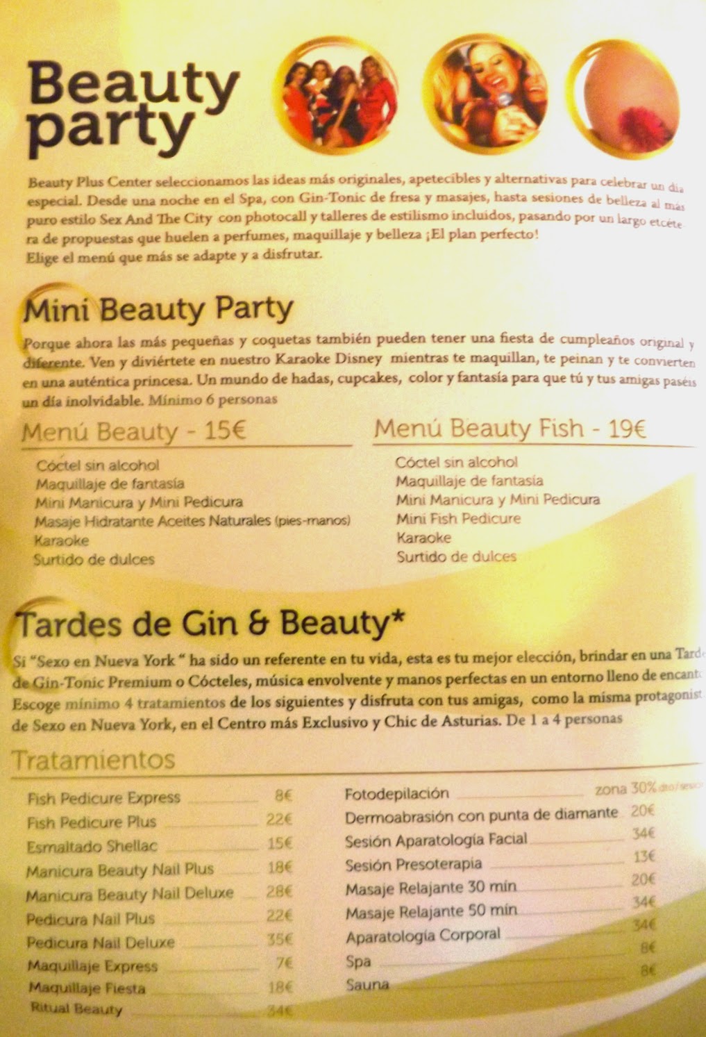 Entre las Beauty Parties que podemos configurar, el centro ofrece algunas: