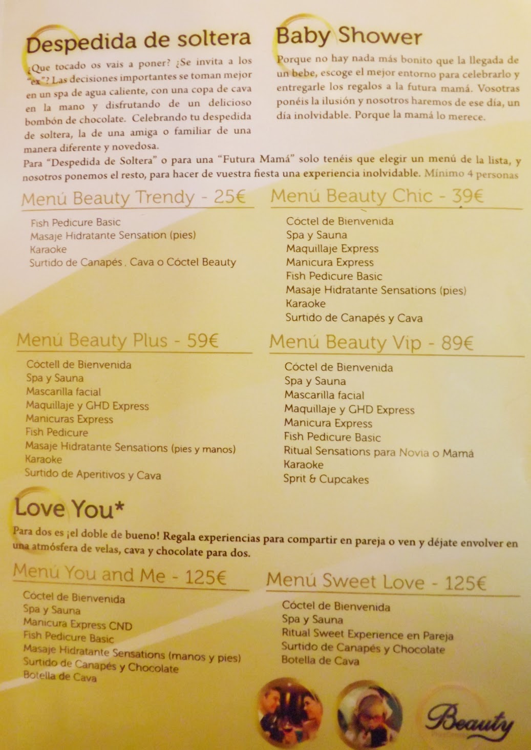 A continuación, os dejo con algunas fotos del centro y un vídeo en el podáis apreciar cómo es el Club. También os he incluído las tarifas de las beauty Parties, aunque hay muchísimos más servicios. Así que para cualquier información es mejor que visitéis su web o llaméis por teléfono:634 77 77 88