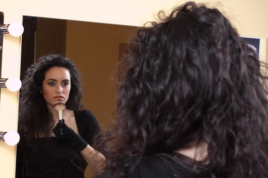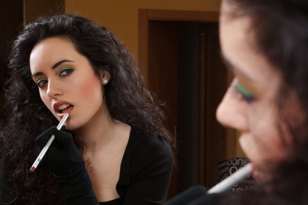 Me desplacé hasta su estudio situado en la calle Galiana nº 12 de Avilés y comenzamos con el estudio de las proporciones de mi rostro y no calabacitas!!para mi propio desasosiego personal no son perfectas, no! son irregulares jaja!!pero no problem, una pincelada por aquí, otra pincelada por allá y todo solucionado!!. A medida que me iba maquillando, iba aprendiendo un montón de trukis!!, por ejemplo, cómo aplicar el iluminador en la parte superior de los pómulos, aletas de la nariz, lagrimales de los ojos y en las cejas en el arco superciliar como toque final, para dar mayor luz a nuestro rostro. O cómo hacer que nuestros labios si son finos como los míos, aumenten estratégicamente de tamaño. Nunca había utilizado sombras de estos colores y me gustó mucho el resultado, ainsss si comparo calabacitas estas fotografías a la cara que tengo al despertar por las mañanas...mejor no decir nada que ya está todo dicho no?:-)