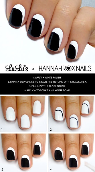 Una manicura distinta en dos colores, usando dibujos geométricos en