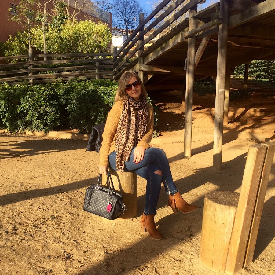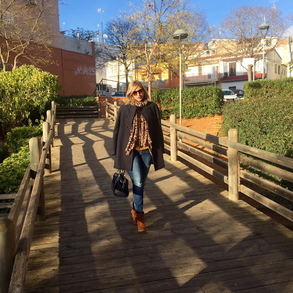 We start a new week and Im practically recovered of my flu and I hope to be fully recuperated in few days. Today I show you a casual and comfy outfit with my new beige sweater that I bought in sales and its very comfy and warm. I wore it with ripped jeans, a blue coat and my boots with fringes that it was my best buy of the season. The accessories of the outfit were a blue bag and my foulard with animal print that gives a chic touch to the outfit.