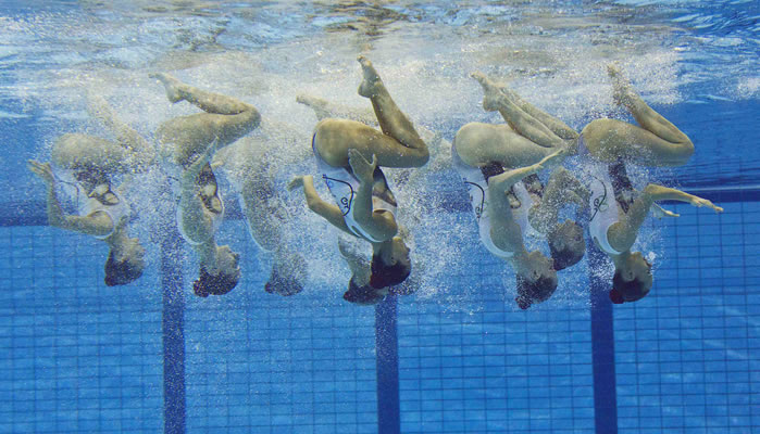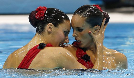 Para conseguir el cabello tan brillante de usa una gelatina de cola de pescado, pero en realidad es un ingrediente de cocina que se obtiene de las vejigas natatorias de peces como el bacalao, el esturión, el barbo o la carpa. es la misma que se utiliza en cocina. Se calienta, se mezcla con agua y se extiende en el pelo hasta que queda una capa compacta. No puede quedar suelto ningún pelo porque conlleva penalización. Así que las nadadoras optan por recoger todo el pelo gelatinado en un moño.