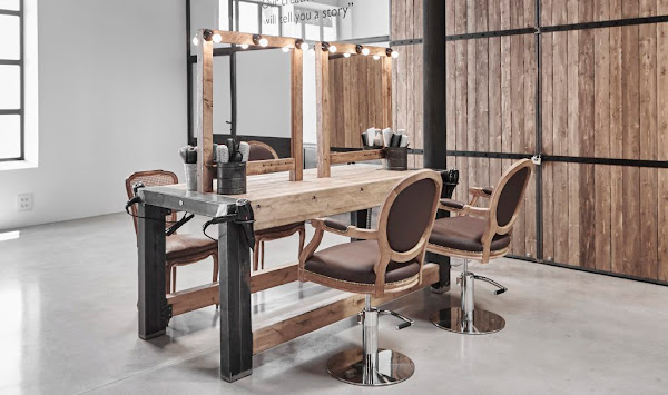 Sí. Esta preciosa entrada nos conduce a un salón de belleza industrial con toques vintage, sí: