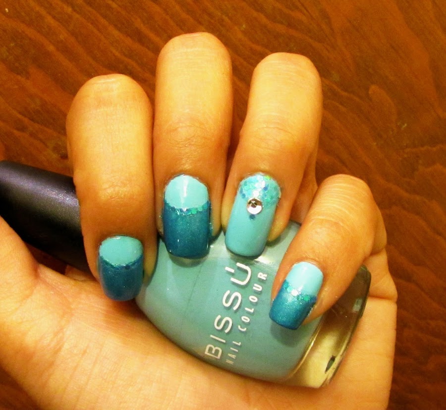 Yo agregué glitter en la división de colores e hice un medio círculo en la uña de acento para darle un toque marino...no sé si lo logré pero me gusto mucho el resultado.