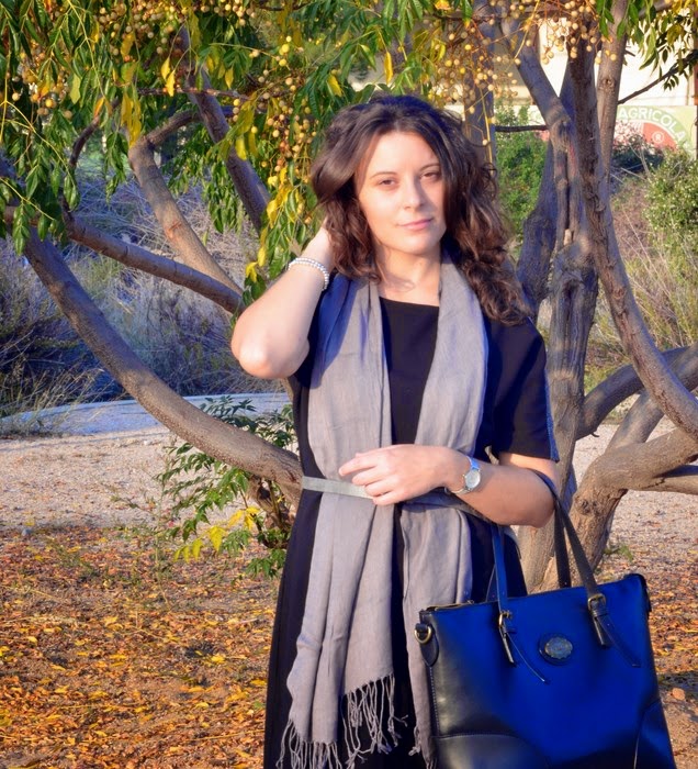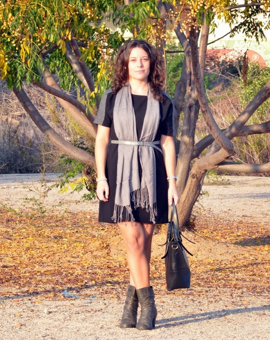Este año una tendencia un tanto peculiar y hasta ahora muy poco vista es la del pañuelo con cinturón. Ya veíamos en las grandes pasarelas como muchos pañuelos formaban parte de muchos vestidos, se mezclaban sus estampados y se diferenciaban por el detalle del cinturón. El look que os propongo hoy no tiene nada de especial, y para darle ese toque moderno he utilizado un pañuelo gris perla a modo de "belted scarf" para que conjuntase con los detalles grisáceos de las mangas del vestido. ¿Qué os parece este look? ¿Os gusta la nueva forma de llevar el pañuelo?