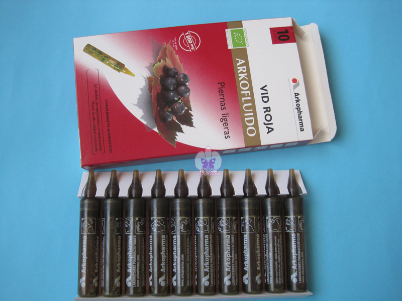 Este complemento alimenticio de ampollas de Vid roja se usan durante 10 días tomando una ampolla al día diluyendo su contenido en medio vaso de agua o zumo, agitando previamente la ampolla. Yo he tomado una ampolla cada mañana con medio vaso de agua durante 10 días y he notado las piernas más ligeras, y eso ha sido todo un alivio con estas temperaturas.
