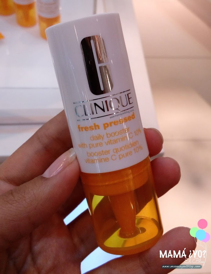 Justo pensando en esto es que Clinique lanzó al mercado su nuevo Fresh Pressed que es un potenciador con Vitamina C. Así que si no tienes tiempo de esperar semanas para ver como funciona esa nueva crema que has comprado, esta es tu mejor opción porque el efecto es inmediato. Lo único que tienes que hacer es agregarle 2 gotitas a tu humectante diario y ¡listo!