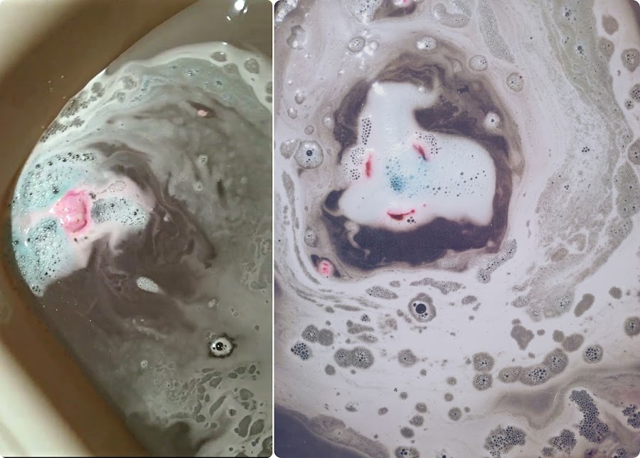 Huele genial, le da un color rosa palo-violeta al agua super bonito y tiene un poco de purpurina, aunque se va en cuanto te secas con el albornoz. Lo que me sorprendió fue la suavidad con la que se quedó la piel, parecía seda!