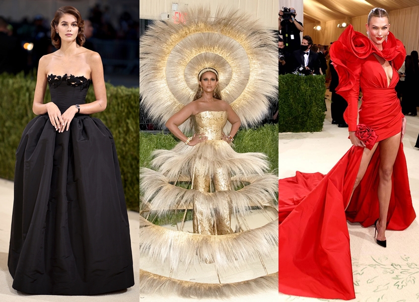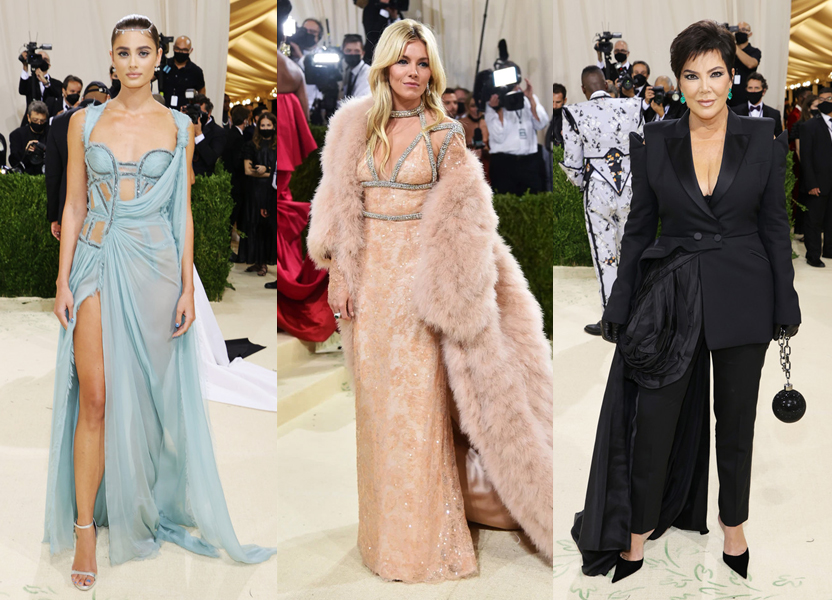 Taylor Hill de Versace, Sienna Miller de Gucci y Kris Jenner de Alexander McQueen.