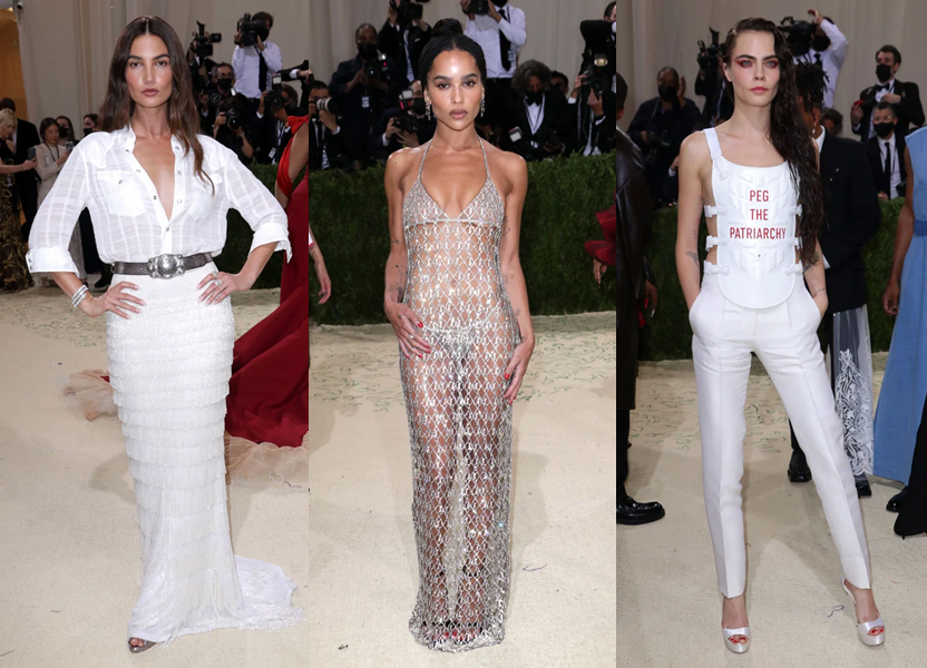 Lily Rose Deep de Chanel, Rihanna de Balenciaga y Joan Smalls de Ralph Lauren.
