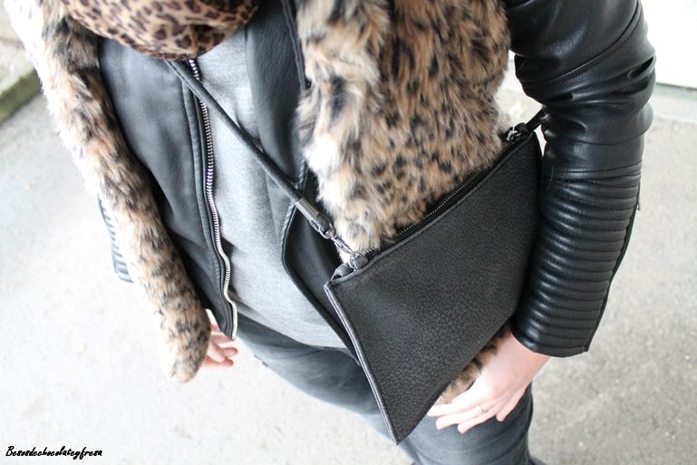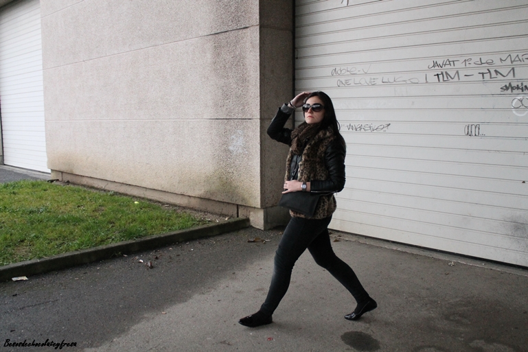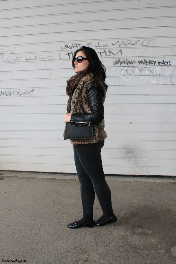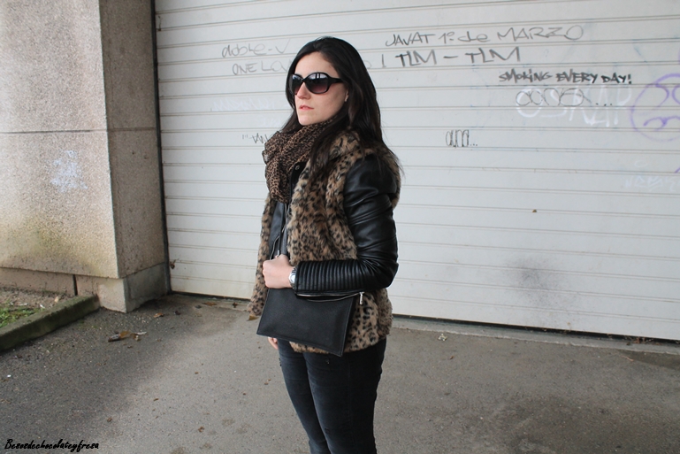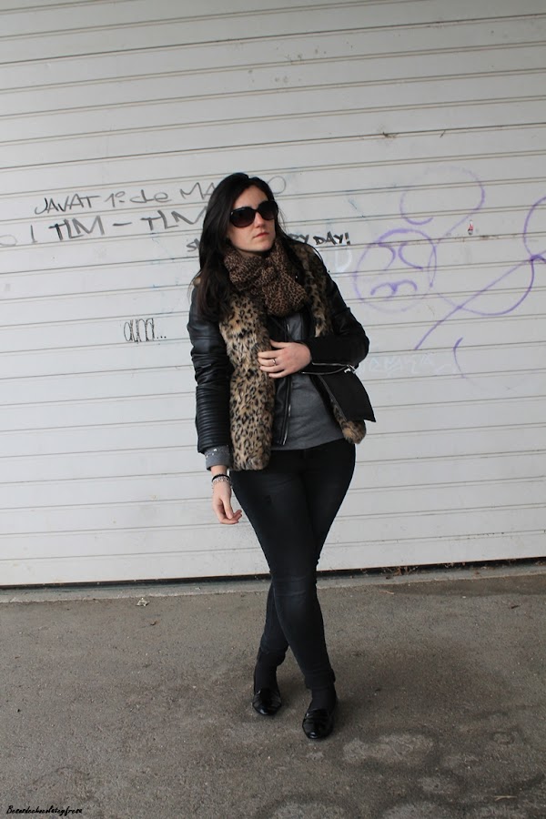 Today I bring you a look in black tones with a touch of animal print, which took the opportunity to photograph the last week, then go for a walk and have a drink, relax plan Sunday. For this occasion I wear jeans in black with gray sweater, and black patent leather slippers biker and then the touch of animal print with vest (which I love as it is with leather jackets) and foulard of the same tone.