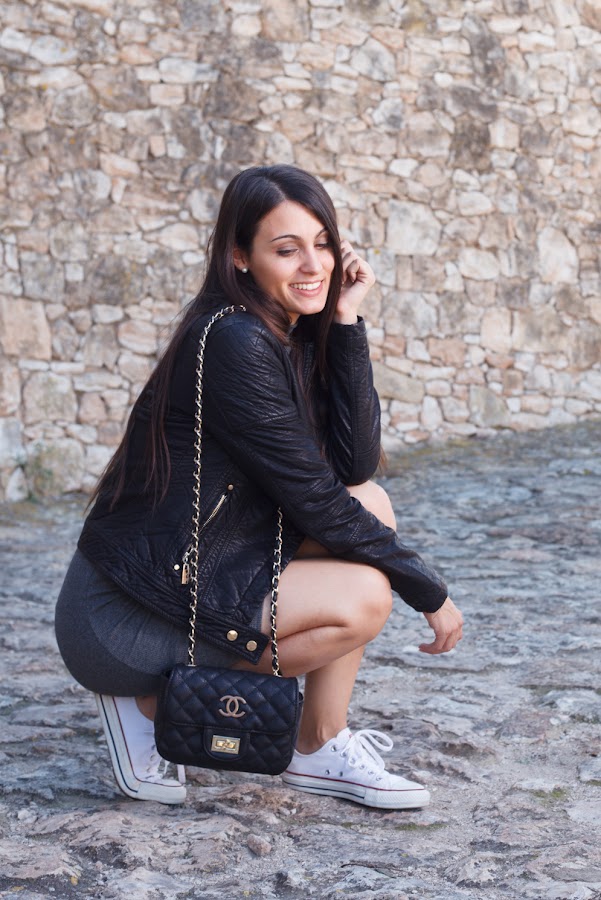 Hoy os presento una (cazadora 39,95€) de MINIPREUS (Muy pronto SHOP ONLINE) que me ha enamorado junto con un vestido de tubo de manga larga y cuello chimenea a un precio LOW COST me costó solo 11,95€ !! Está también disponible en negro y rojo. Con un taconazo también queda ideal pero en esta ocasión le he querido dar un toque SPORT/CHIC al look con mis CONVERSE.