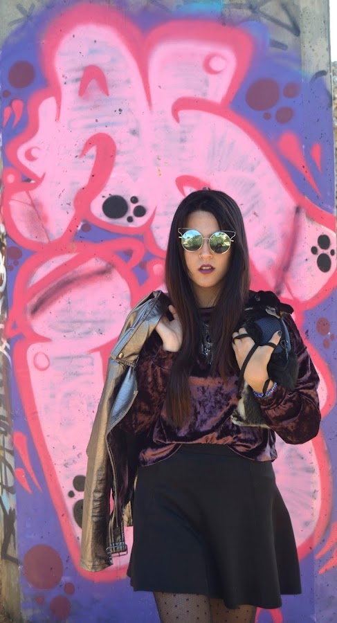 Esta fue la combinación que hice para la cena de nochebuena, y el resultado fue la combinación de varias tendencias: terciopelo y metalizados. Por si fuera poco, también le añadí estas medias de lunares que me costaron baratísimas en Primark, no se si rondaban los 3 o así, pero estoy encantada con ellas.