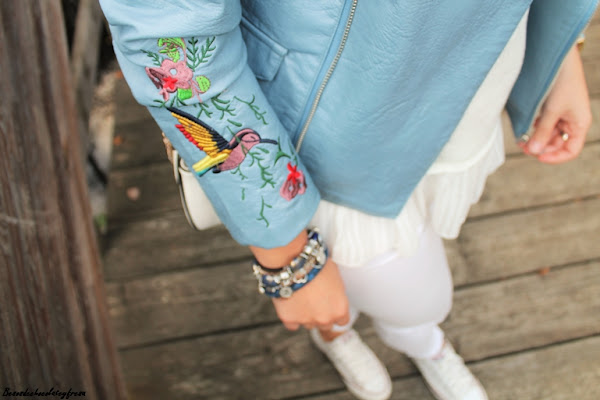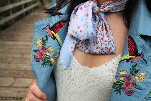 Hoy os enseño un look con mi nueva biker azul serenidad con bordados en las solapas y en las mangas de Zaful, concretamente tiene colibris y flores y me pareció original a la hora de escogerla por ser diferente y por hacerme con otra biker de cara al invierno. Tiene además cinturón y es super cómoda y ligera.