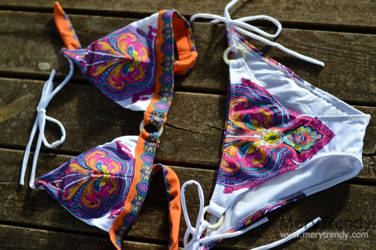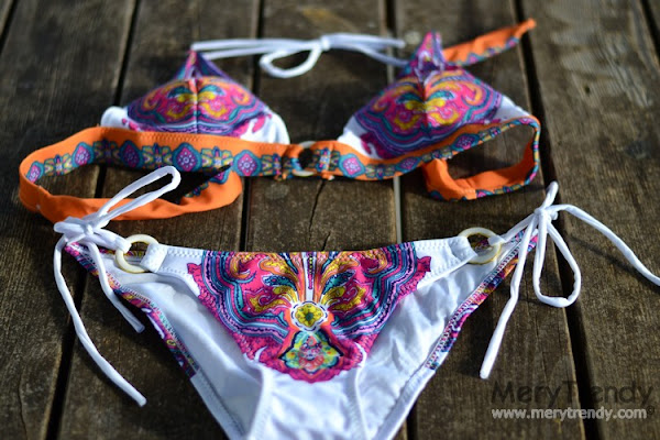 Esta vez, le ha tocado el turno a un diseño de 2014 que, como ya os estaréis imaginando, es de mis favoritos. La cosa es que ya estaba en las últimas y, aprovechando que me iba a Canarias, no se me ocurrió mejor excusa para volver a encargarlo. Lo cierto es que estuve bastante tiempo rebuscando en webs de venta online desde que me picara el gusanillo tras habérselo visto a una chica que caminaba por la orilla en una escena de la peli "Los vigilantes de la playa"... Jijijijiji, hasta que finalmente di con él en Romwe porque, como os digo, tenía ya varias temporadas. Lo bueno es que estaba muy rebajado (no llegaba ni a 8 Euros), así que ni me lo pensé dos veces. Lo que sí hice fue cogerme una talla menos, porque con el tiempo, el que tenía se me había dado un poquito de sí y la braga se me veía amplia.