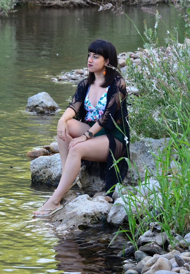 Por otro lado está el maxi kimono, una prenda muy de moda para acompañar nuestros looks de baño. Cada vez me gusta más este tipo de prendas. Este en concreto, con estampado de hojas me pareció precioso.