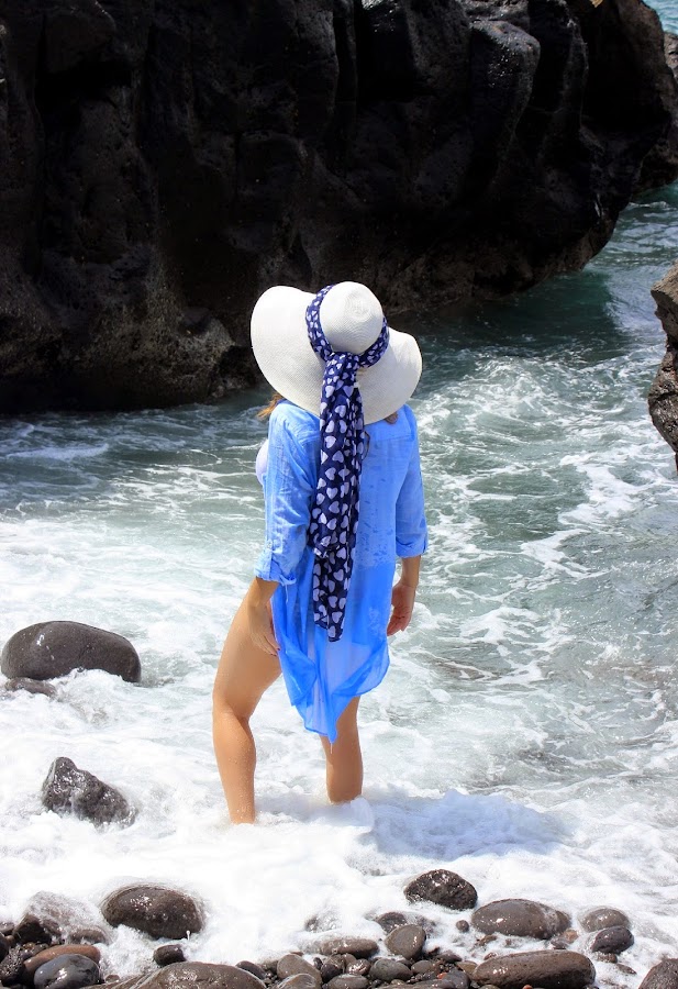 Ustedes imagínense la playa hasta los topes de gente, los típicos turistas que van los domingos a pasear por la playa, pescadores,etc... mi hija y yo posando para las fotos, fue un show jajaja.La gente separaba para mirar que es lo que pasaba, nos señalaban, se reían...bueno, bueno nosotros no podíamos para de reírnos, me caí, pisé un callao que casi me mato porque no podía parar de reírme.