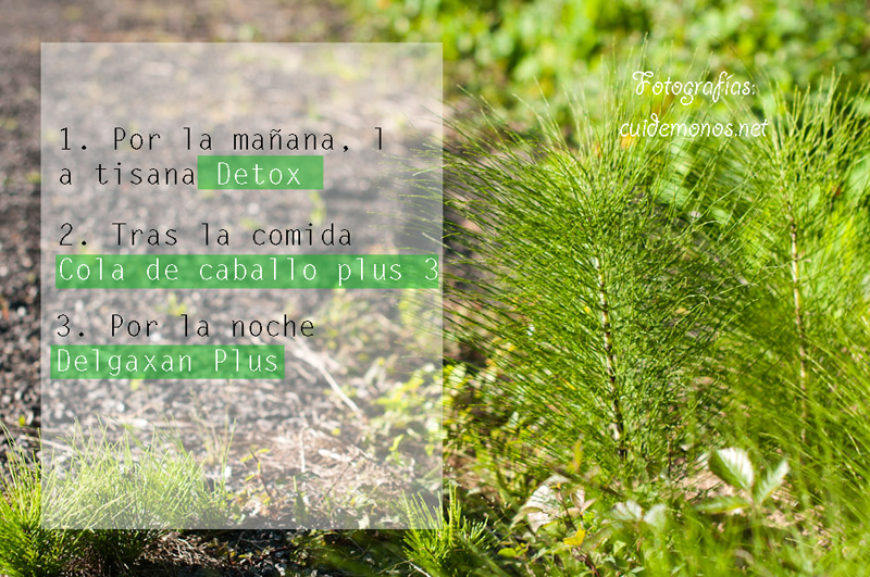 2. Tras la comida Cola de caballo plus 3: además de la archiconocida cola de caballo también se compone de ortosifón, solidago gigantea y vainas de judías. Con un ligero sabor a piña para hacer más agradable su toma (que ya sabemos que no a todos les gusta el sabor de la cola de caballo) en este caso es un concentrado exclusivo en contra de la acumulación de líquidos.