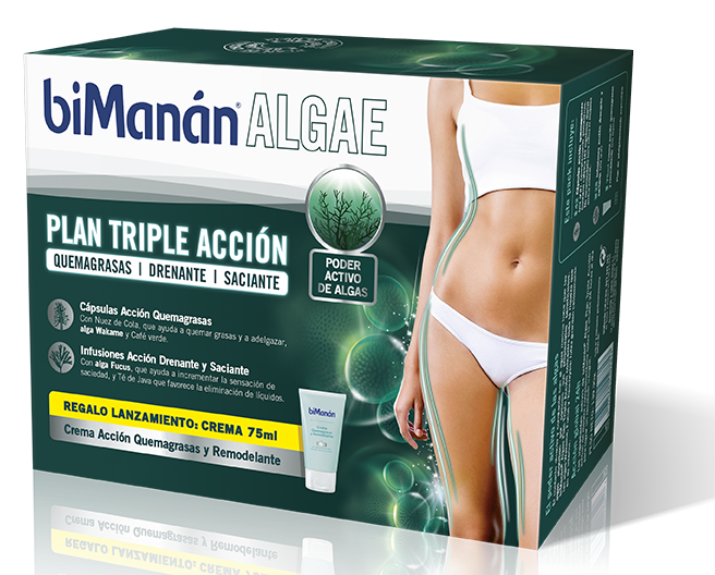 biManán Algae es un plan triple acción de dos semanas formulado con algas marinas , conocidas por su alto poder saciante .