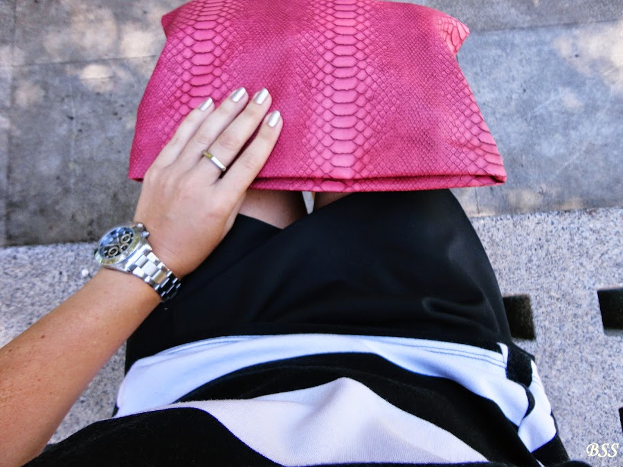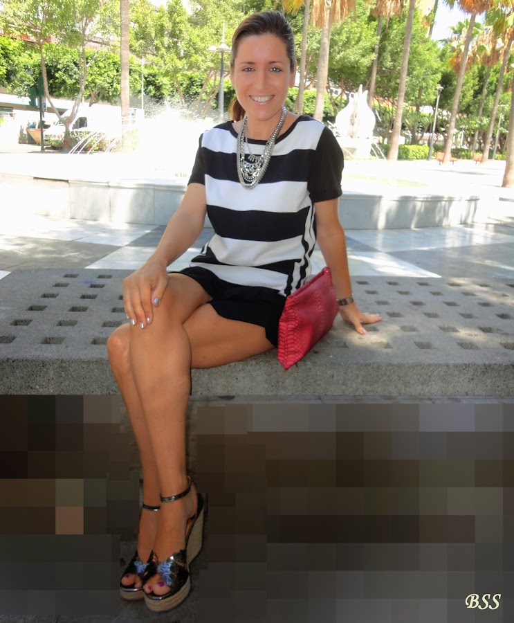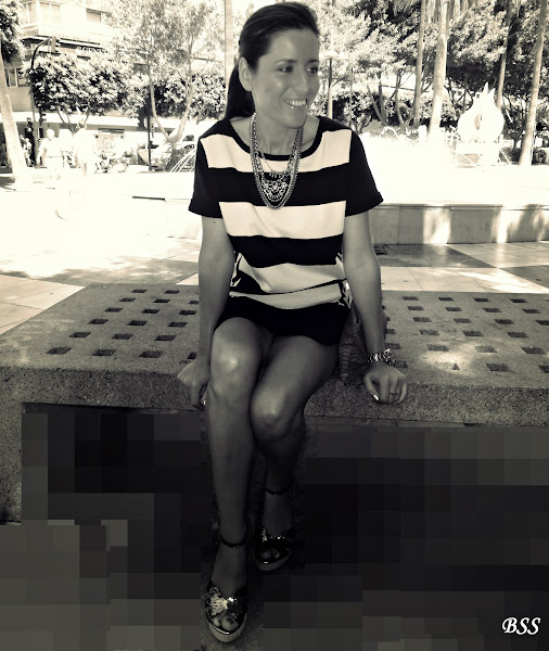 En cuadros, formas geométricas o como en este caso, rayas, esta fusión de los dos extremos me encanta...