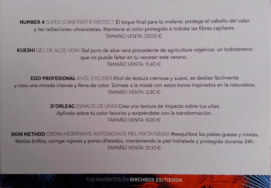 Como ya es habitual incluyen las postales con tips e información sobre los productos, yo paso un poco de ellas pero está bien que incluyan alguna información extra.