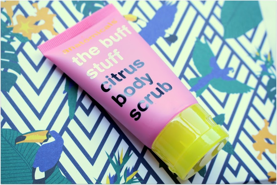 El primero de los productos es el exfoliante corporal cítrico de Anatomicals The Buff Stuff. Este fue el producto que escogí entre otros de la misma casa (que ahora mismo no recuerdo cuales eran), lo tuve bastante claro (ya conocéis mi obsesión por los exfoliantes). El packaging es inmejorable, espero que el producto también lo sea. Lleva ingredientes como el pomelo, que tiene propiedades energizantes, y tiene un aroma cítrico que espero que me acompañe durante el día.