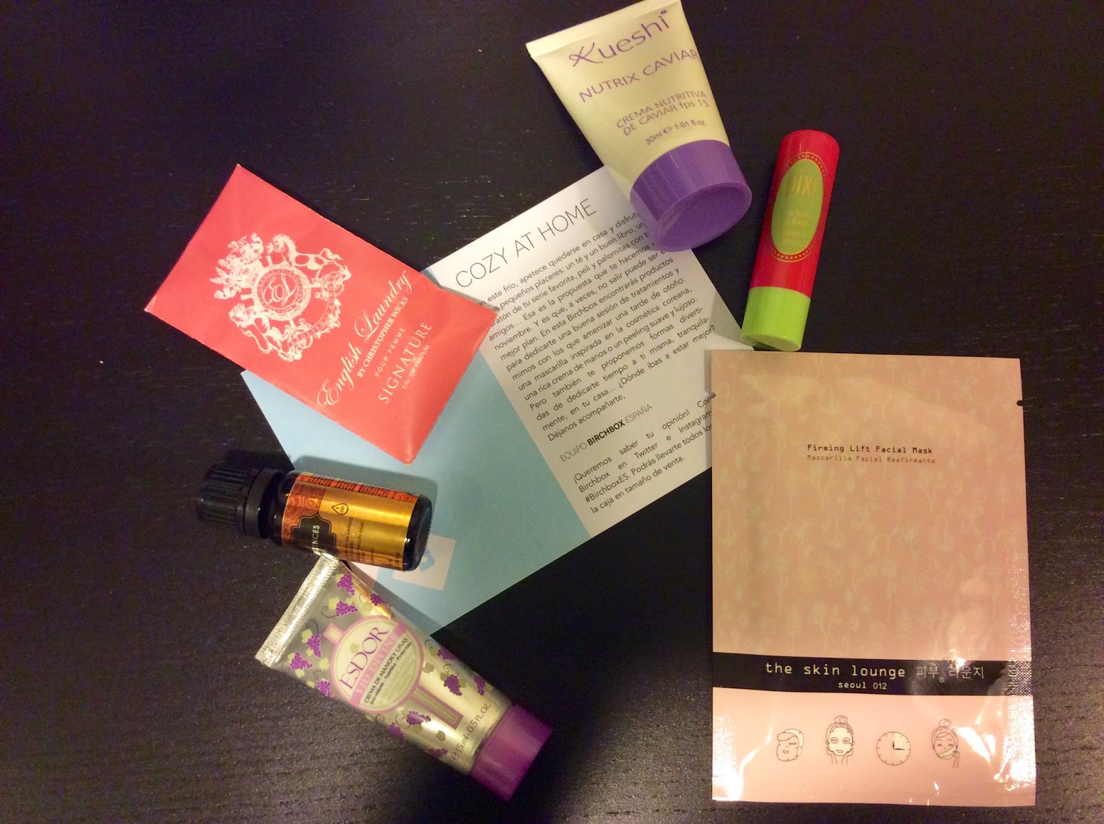 La Birchbox de noviembre esta dedicada al placer de quedarse en casa tapada con una mantita, viendo una película o nuestra serie favorita o simplemente dedicándonos un rato a nosotras mismas, para hacernos una buena manicura o una mascarilla. Y es que con el frío, apetece quedarse más en casa y es un buen momento para aprovechar para regalarnos tratamientos.