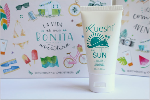 Seguidamente nos topamos con un aftersun, simpre tan útiles en los días calurosos de verano. Esta es de la marca Kueshi, contiene extracto de aloe vera y manzanilla ecológicos y nos ayuda a calmar la piel enrojecida y a regenera las células perdidas por los rayos solares. Además, actúa como potenciador del bronceado para darle longevidad.