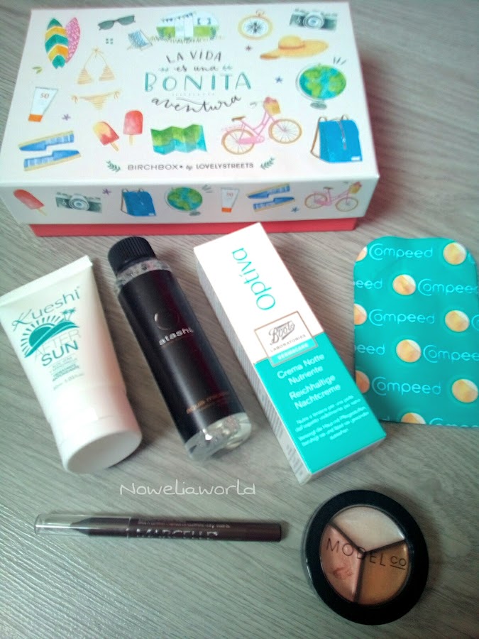 Bueno, pues este mes la caja en sí es un diseño muy bonito enfocado en el verano y los productos aparte de variados, son unas tallas muy generosas y de buenas marcas. Además me encanta que traiga dos maquillajes este mes, el lápiz y el trío tan bonito y apañado. Todo esto por 995€ está muy bien.