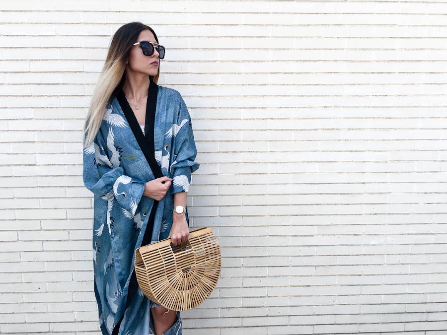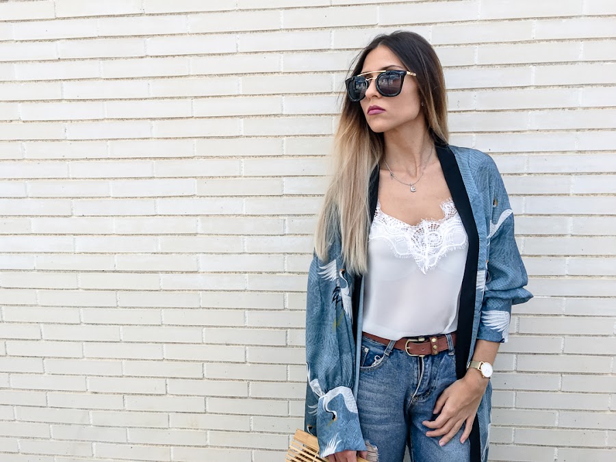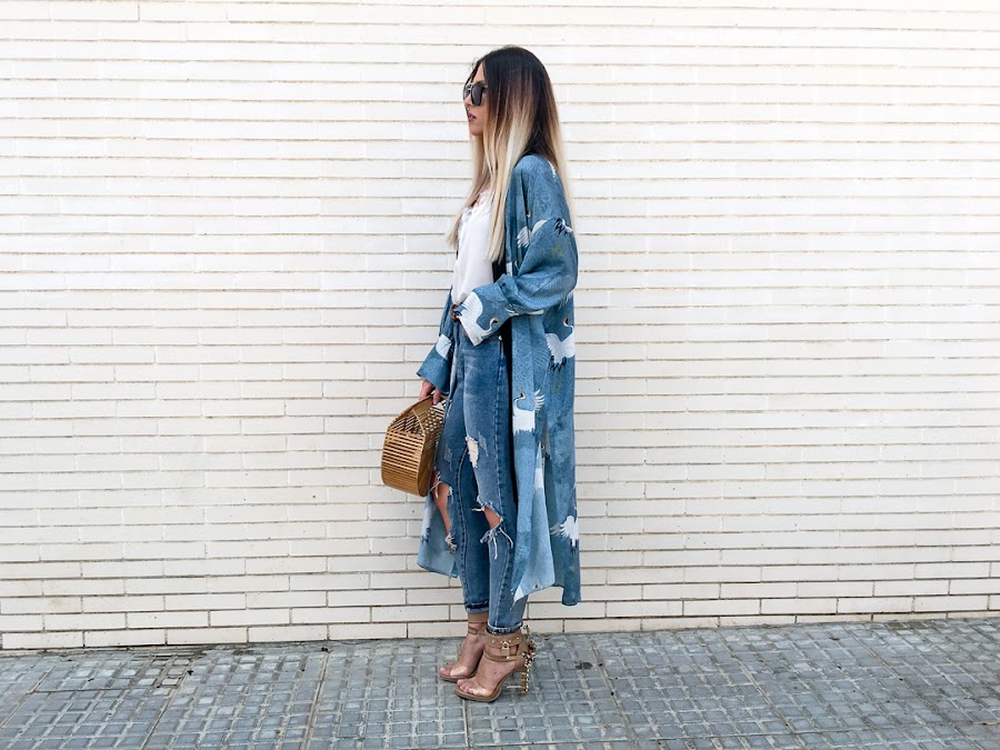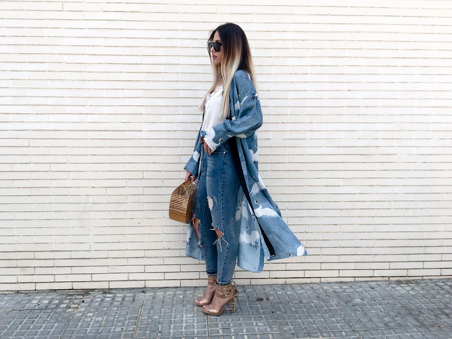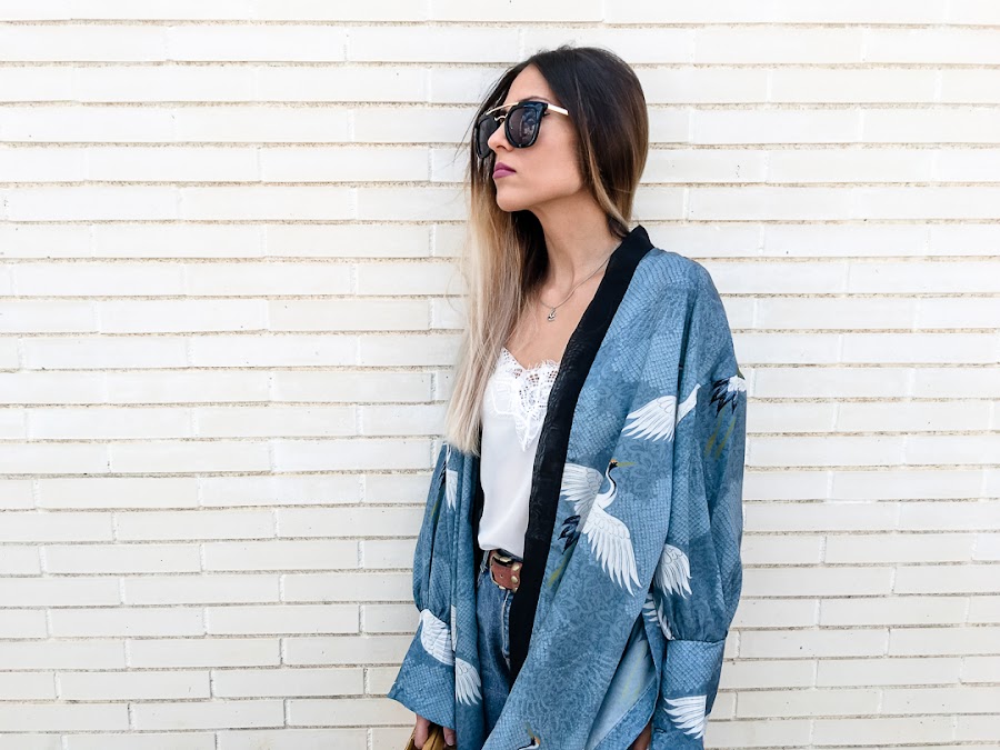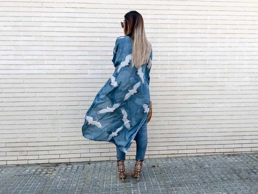 El protagonista de hoy sabréis cuál es nada más verlo y es que me quedé con la boca abierta desde que lo vi!! Creo que es el kimono más bonito que he visto en mi vida!! Es de SHEIN y me encanta! Me encanta el color, el estampado, la caída que tiene y las mil posibilidades de combinaciones que tiene. De color azul, con un estampado de pájaros blancos y un filo negro que hace un contraste precioso. Además, tiene unas aperturas laterales, que hace que el viento lo lleve donde quiera y que tenga esa caída tan bonita. Tiene un cinturón, pero yo he preferido no llevarlo, porque me gusta más llevarlo abierto, pero podéis anudarlo en la cintura.