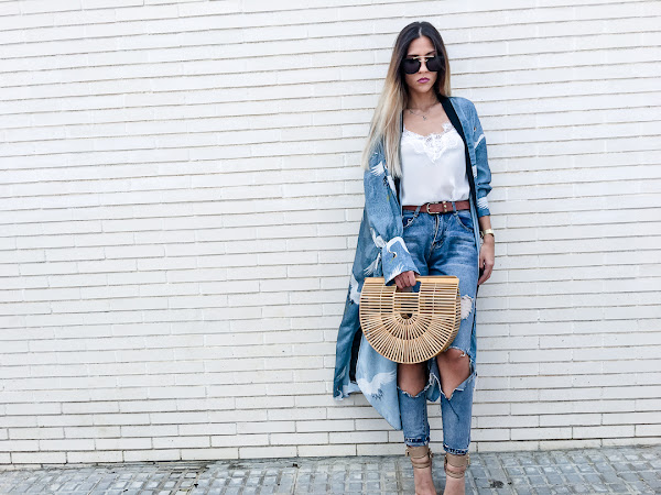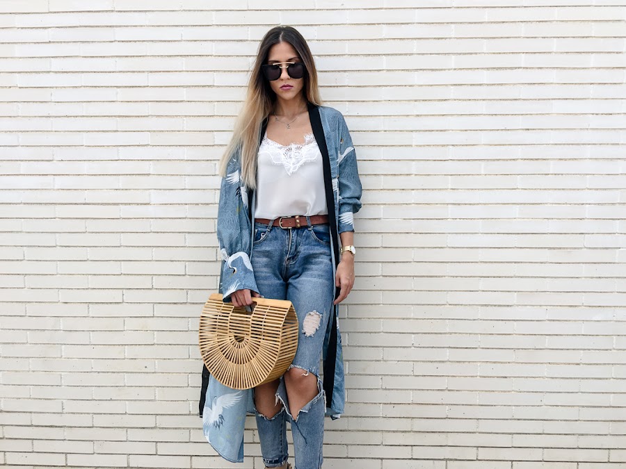 Lo he combinado con unos jeans súper rotos, una camiseta lencera, mis sandalias de tacón de pedrería azul y mi bolso de bambú que ya os he enseñado varias veces!!
