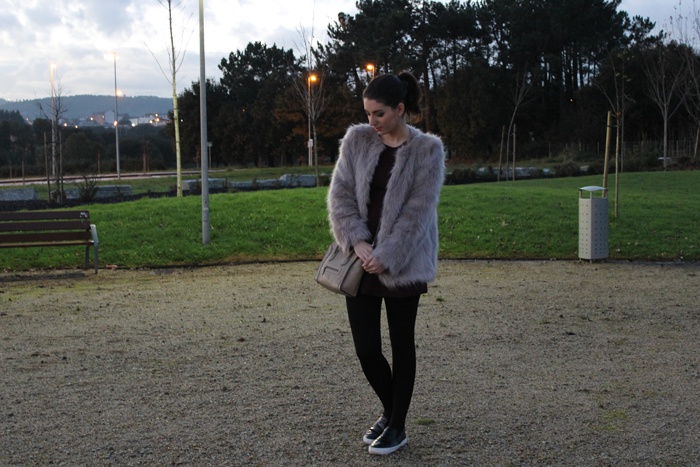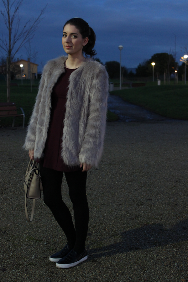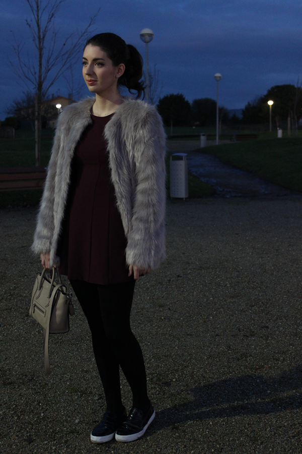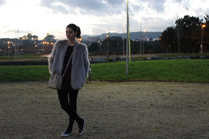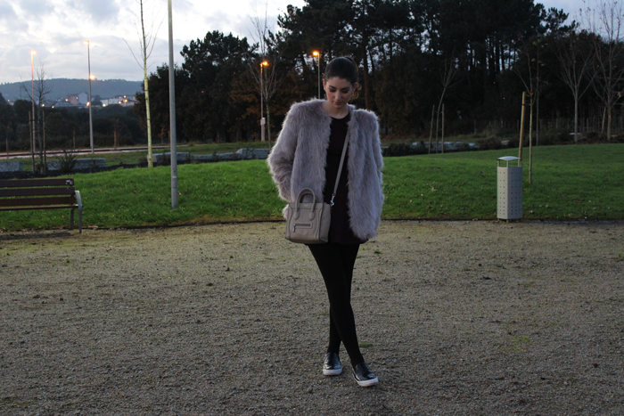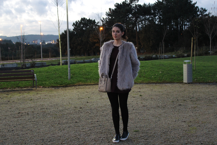 Este fue el look de mi cumple, con las que son mis prendas favoritas para este invierno, el abrigo de pelo y un mono, que aunque no se vea bien, no es negro, es color berenjena.