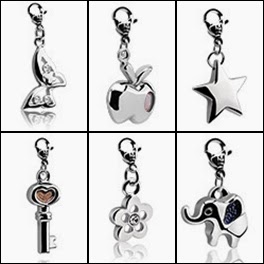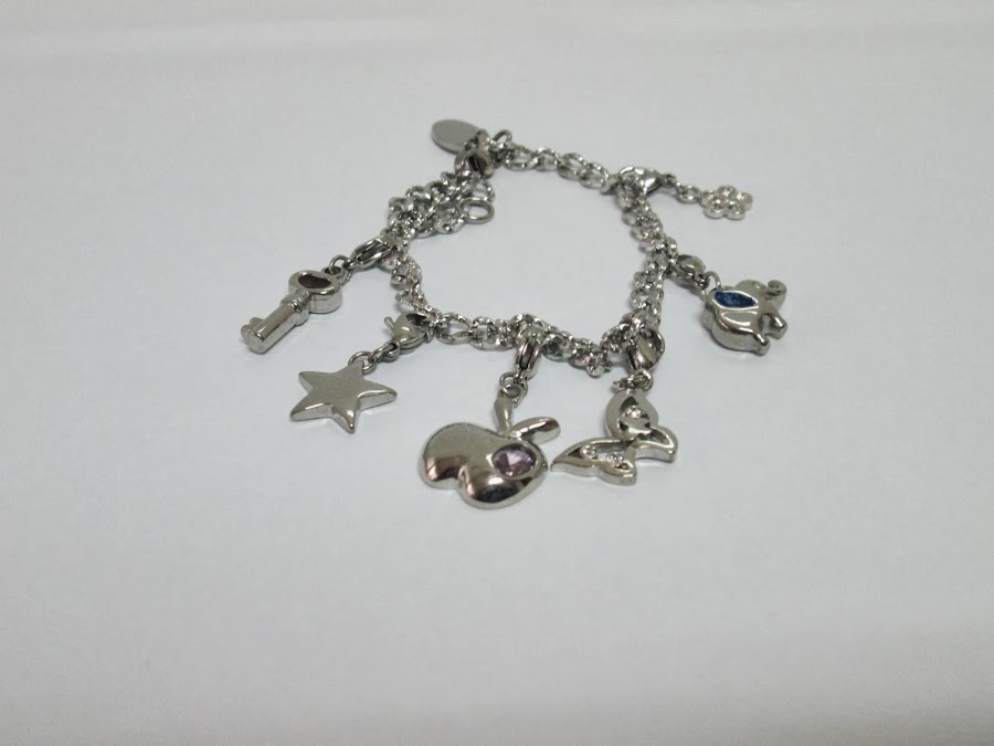Después de mucho ver y pensar, decidí por descartarme con 6 charms: uno en forma de mariposa, otro en forma de manzana, una estrellita, una llave, una flor y un elefante.