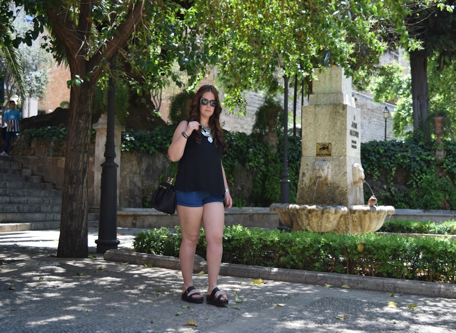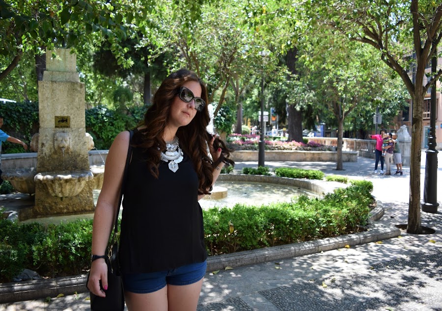 Buenas tardes!! Desde que estoy en Ibiza no tengo tiempo de hacer tantas fotos como antes, ya no tengo a mi fotógrafo :( . Estas las hice el fin de semana que volví a casa y aprovechamos para pasear y hacer fotitos, con lo que a mí me gustan! jajaja. El look es muy normal pero con el calor que hace no me apetece otra cosa jeje. Adorné el look con un enorme collar plateado, de los que me gustan y las plataformas que últimamente no me quito. Espero que os guste!! Feliz Viernes, os deseo un fin de semana genial!