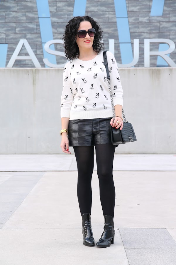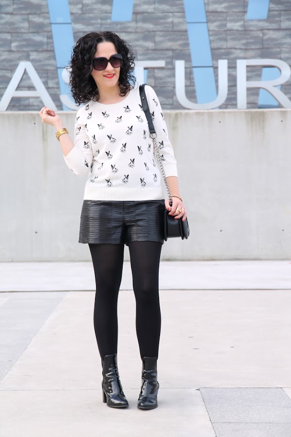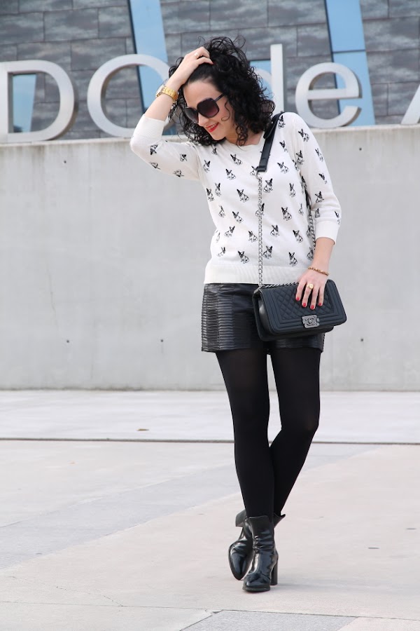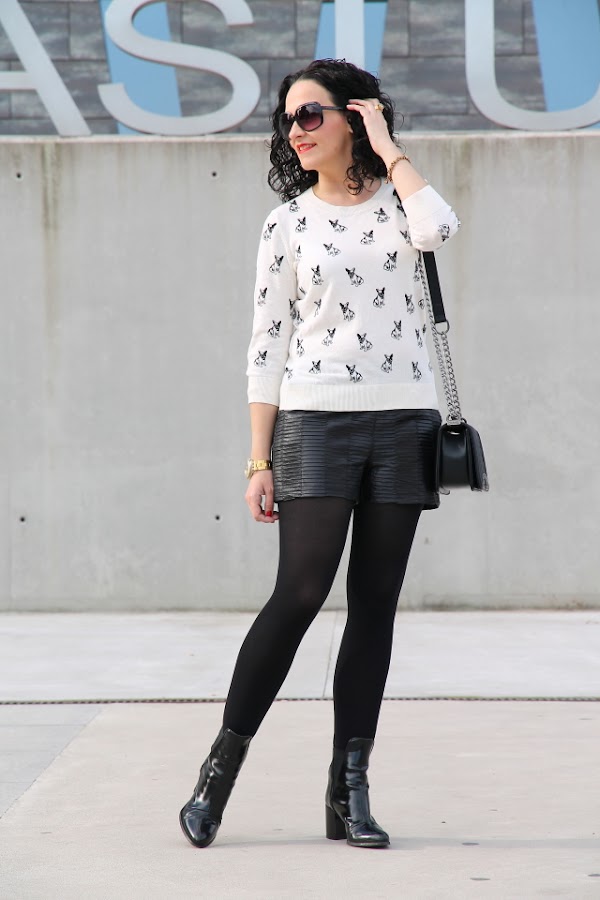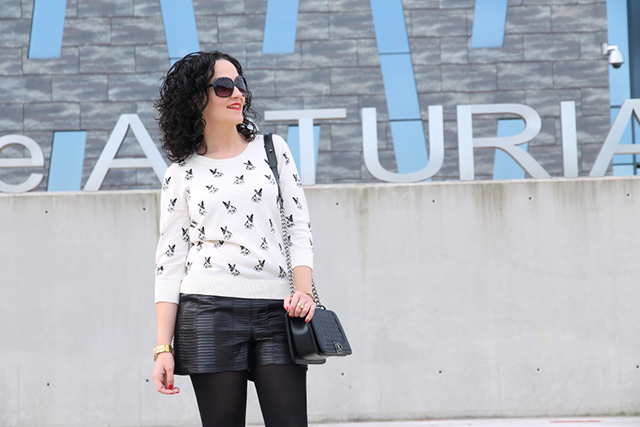 Aunque ya ha pasado un mes desde mis vacaciones por el Norte aun me quedaba por mostraros este look que llevé para disfrutar de un día de turismo por Gijón. Un estilismo en blanco y negro con jersey con print de perros y shorts de piel que ya visteis aquí, ambas piezas compradas en Japón. Como ya os comenté, el país nipón es ideal para ir de shopping y aunque me compré muchas prendas la mayoría todavía no os las he podido mostrar, al ser de la temporada otoño invierno he tenido que esperar hasta ahora que ya hace frio para poder estrenarlas.
