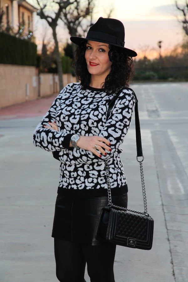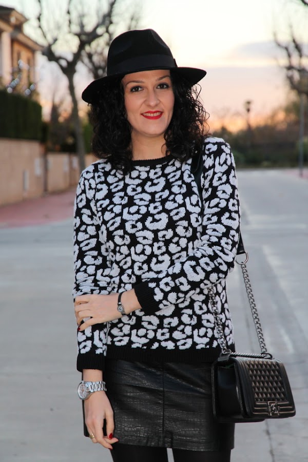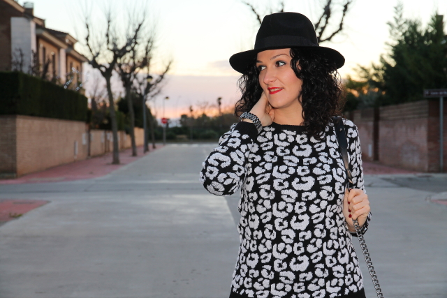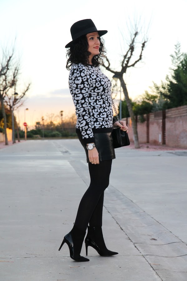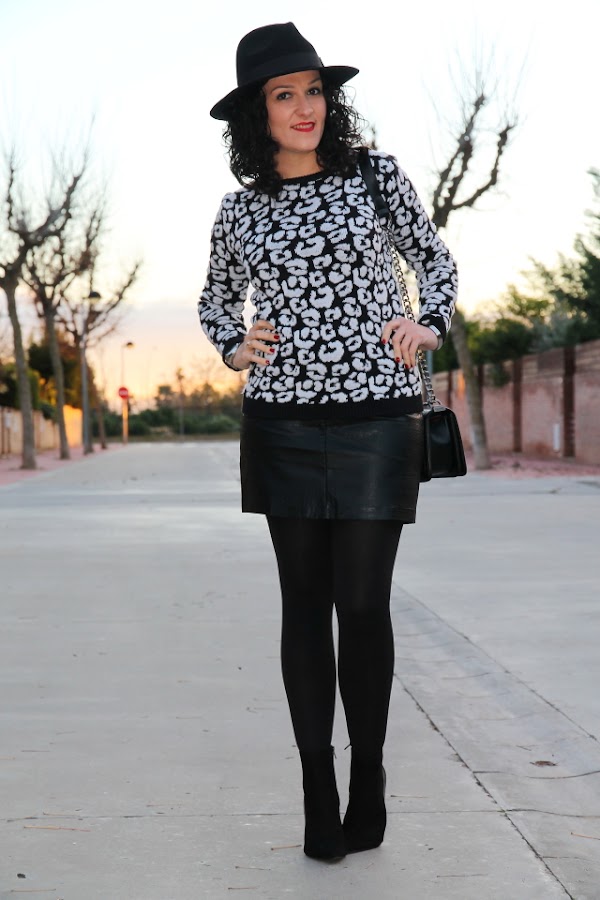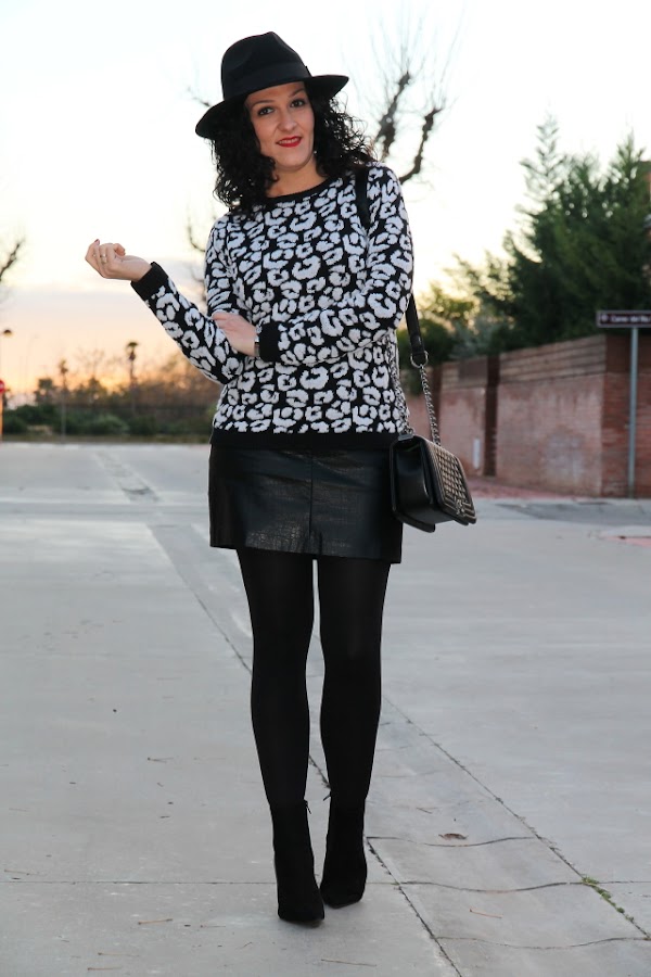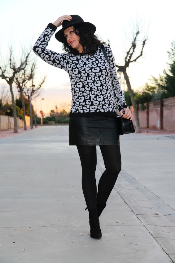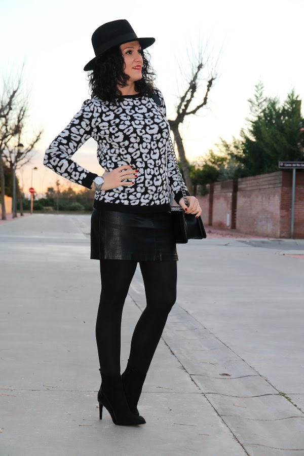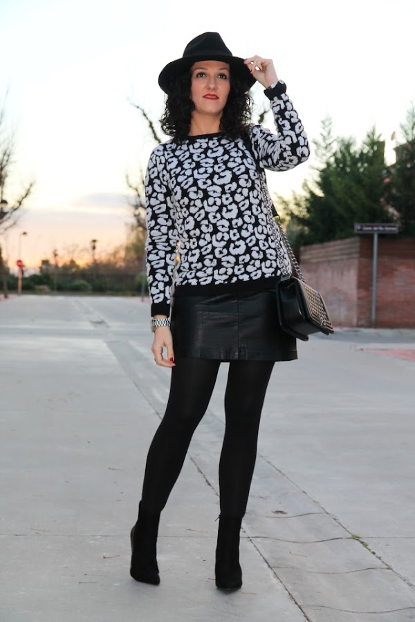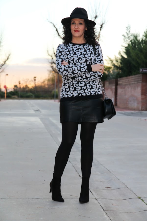 Empezando semana con uno de mis outfits preferidos de este invierno, el motivo es porque todas las prendas han sido parte de mis mejores compras esta temporada. El jersey con estampado animal print en blanco y negro ya os lo había enseñado en mis redes sociales, me encanta y lo estoy llevando un montón aunque por aquí todavía no había aparecido. Lo llevo con la falda de polipiel negra que ya os mostré aquí y que me gusta por lo combinable que es. En cuanto a los botines además de bonitos han pasado a ser uno de mis favoritos porque tienen un tacón muy cómodo.