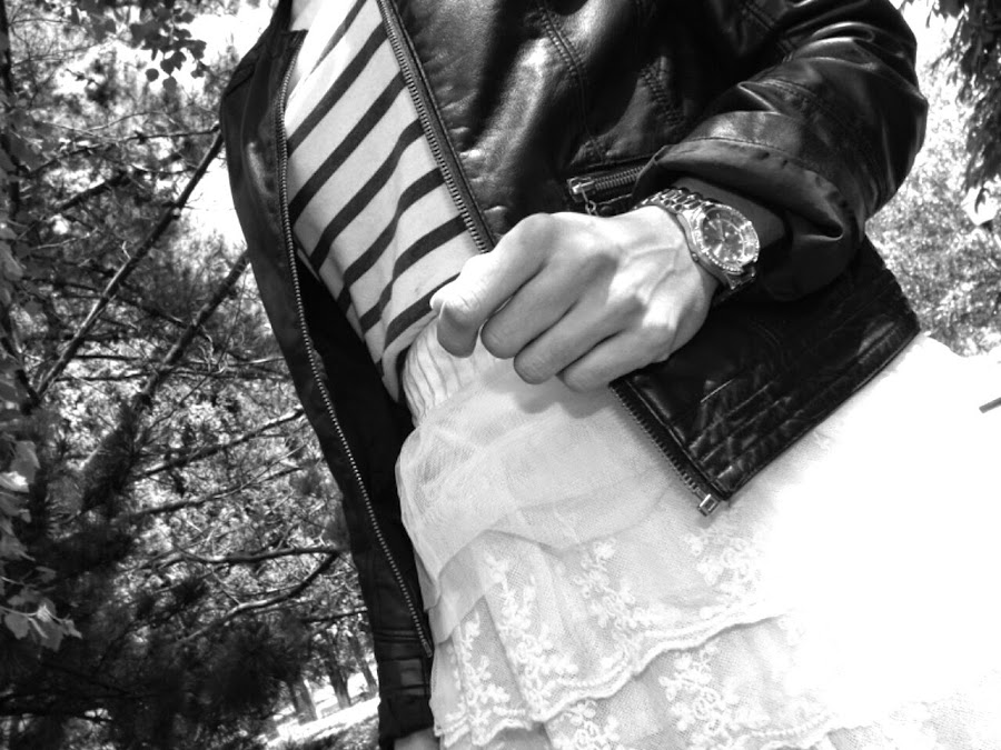 Of all the trends this spring 2014 that soon comes to an end, the lace is the most romantic and feminine with transparencies. Precisely that´s why I wanted to break the delicate skirt with black accessories and give it a rocker touch with my old leather jacket. Finally, it has proved a different and flattering outfit .