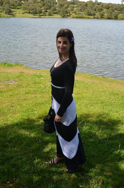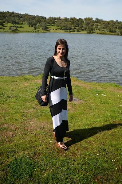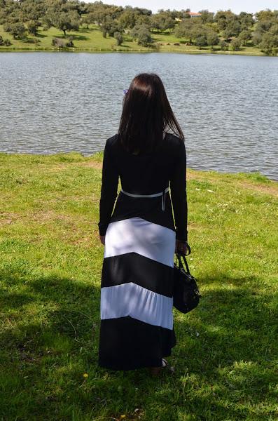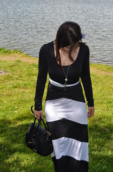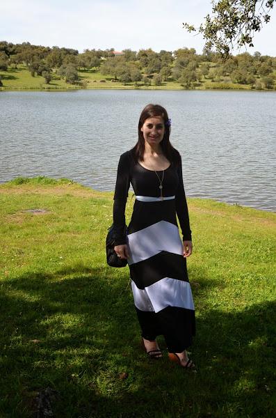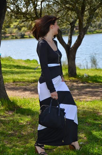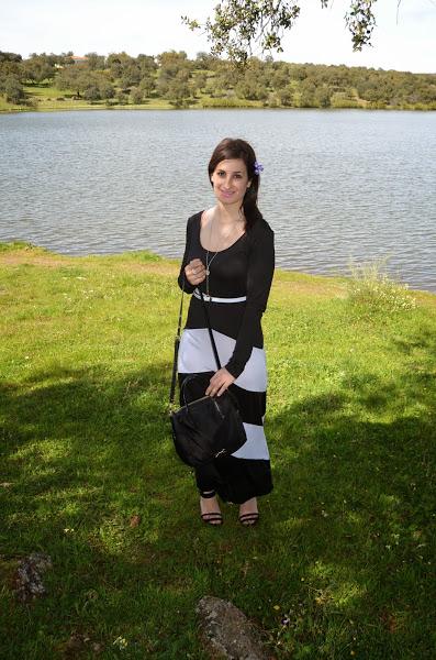 Nunca suelo usar vestidos muy largos porque soy más bien bajita y no me gusta como me quedan, pero en este caso al ser un vestido negro que estiliza bastante y con esas rayas blancas no me disgusto la idea. Además le añadí unas buenas cuñas y este fue el resultado, ¿os gusta?