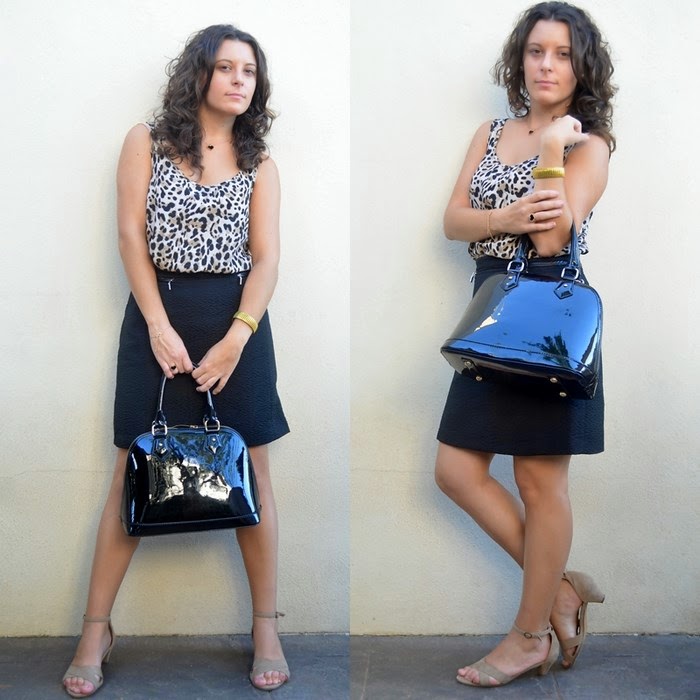 Hoy os os propongo otro look working girl, perfecto para ir al trabajo. Una prenda que debemos tener como fondo de armario es una falda negra, ya que combina perfectamente con una blusa y podemos conseguir un look elegante y formal. Como ya os comenté el negro es un color apropiado para ir a la oficina ya que denota cierta formalidad. En este caso, me decanté por darle un poco de vida al outfit con la blusa de animal print, que tanto es tendencia este otoño y con un conjunto de colgante, pulsera y anillo con detalle de corazón en negro. No podía faltar mi bolso perfecto de charol, donde caben un montón de cosas y además le da un toque elegante al look.