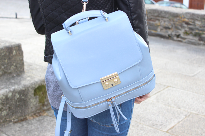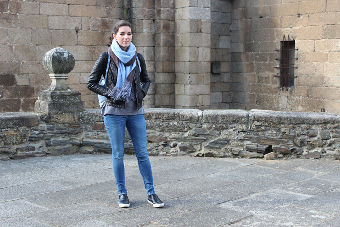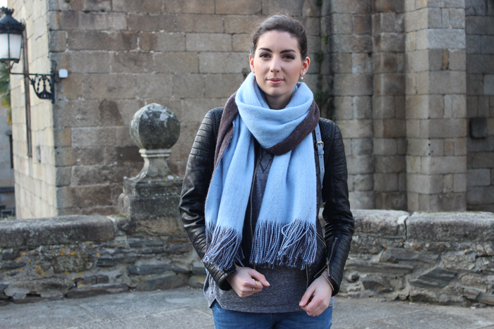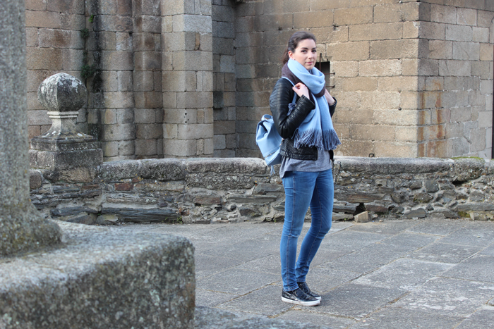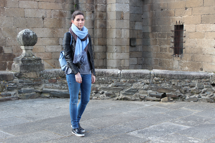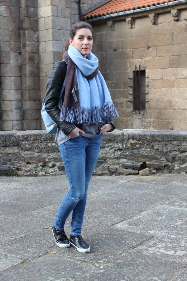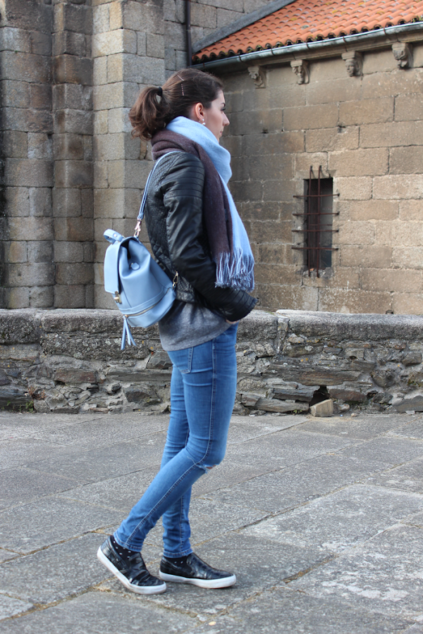 I thought that I could take the scarves out of the closet but the weather won"t collaborate, so lets use them until the weather wants to be sunny and warm. Besides who would say that this one looks so good with my backpack.