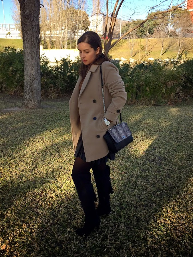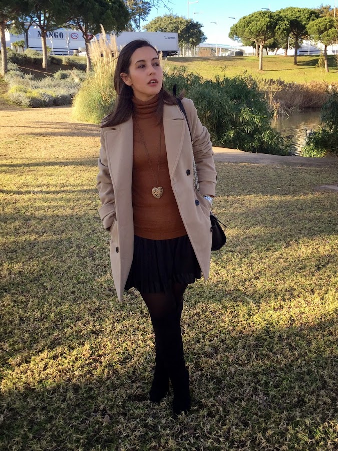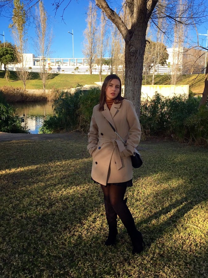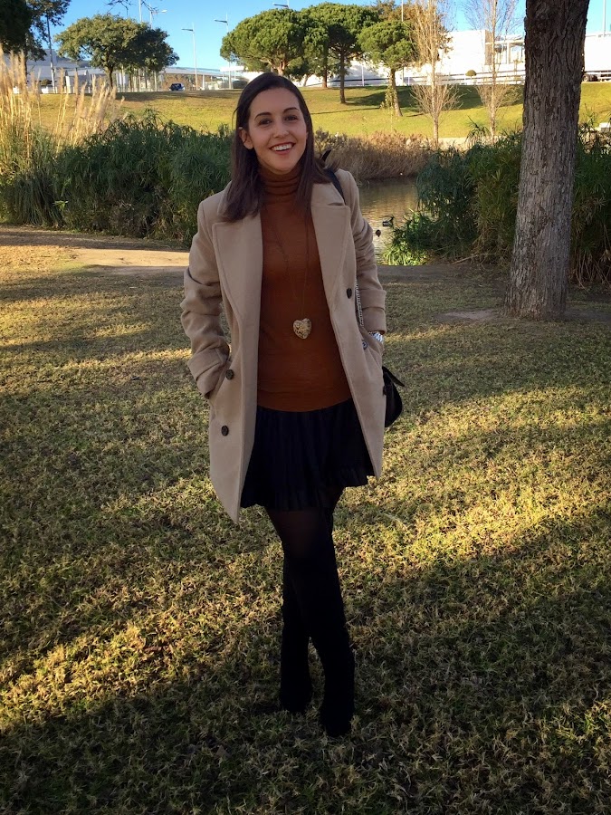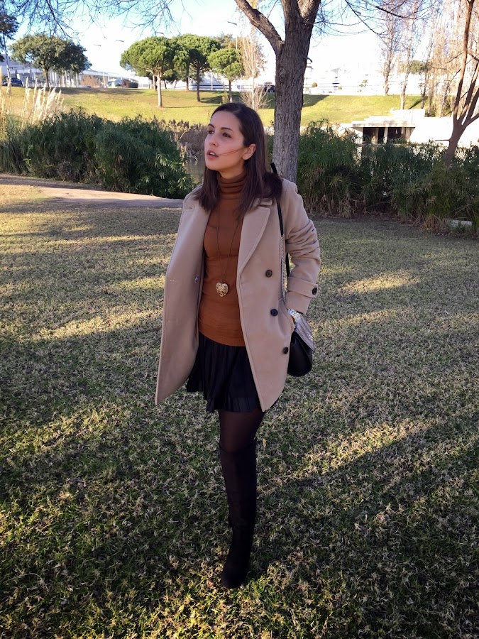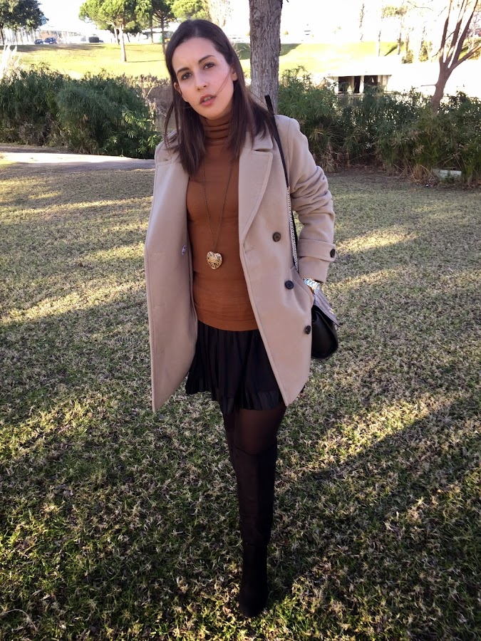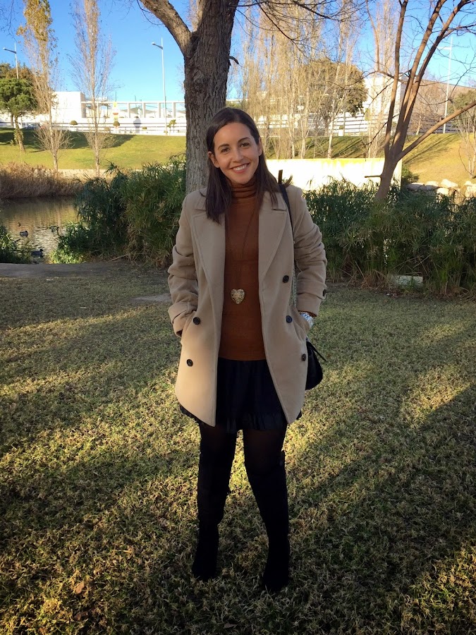 The outfit that I show you today I wore it last saturday to go to a meal with my boyfriend to the Tagliatella, one of my favourites restaurants of italian meals. In this outfit, I wore a black skirt with a brown sweater, my new beige coat and my black XL boots. An easy and female outfit, that it"s is perfect for a romantic meal.