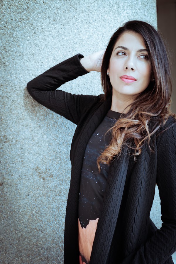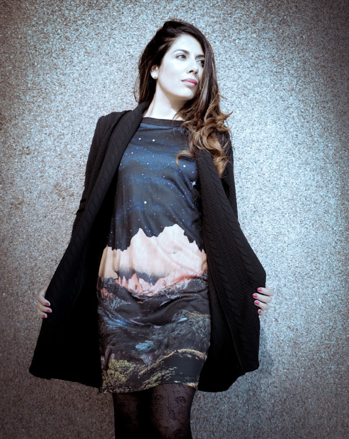 Today I wanted to go for more elegant look. I decided to wear the coat with this beautiful dress from Nicci Boutiques that I call it ¨ Spacial Dress¨ because its picture transports me to the universe and makes me wonder about other planets. This a perfect corporate look or a great option for dinner at night.