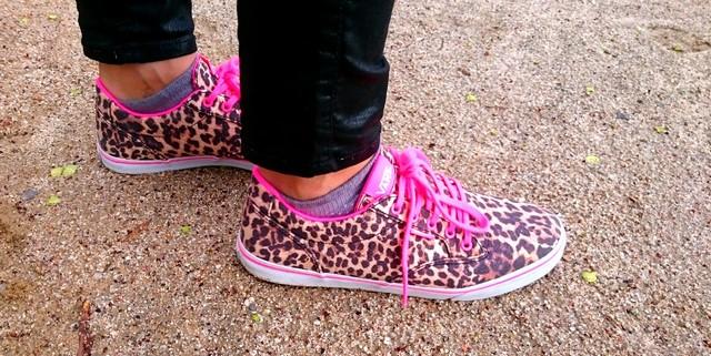 Zapatillas Vans Cheetah son geniales, ¿no os parece? Tienen un estilazo que combina sensacional con este modelo. Aportan el punto divertido para hacer el look diferente y atrevido. Las encontré de casualidad en las Rebajas pasadas en Las Rozas Village y no puede perder la oportunidad de tener unas zapatillas con este original diseño, uniendo el dibujo de leopardo y el color rosa magenta.