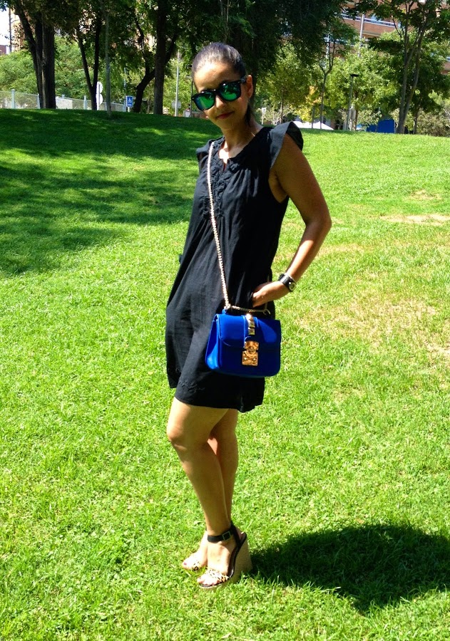 Hi sweeties! Black dresses are imprescindible in my closet. They are the perfect garment, because when you don"t know what to wear, you can put one of them. In this case, I wore my black dress with my blue bag of Sweet Coquette, that it is one of my favourite bags. And my new sandals with animal print of Suiteblanco. A basic outfit, but that it"s always a success.