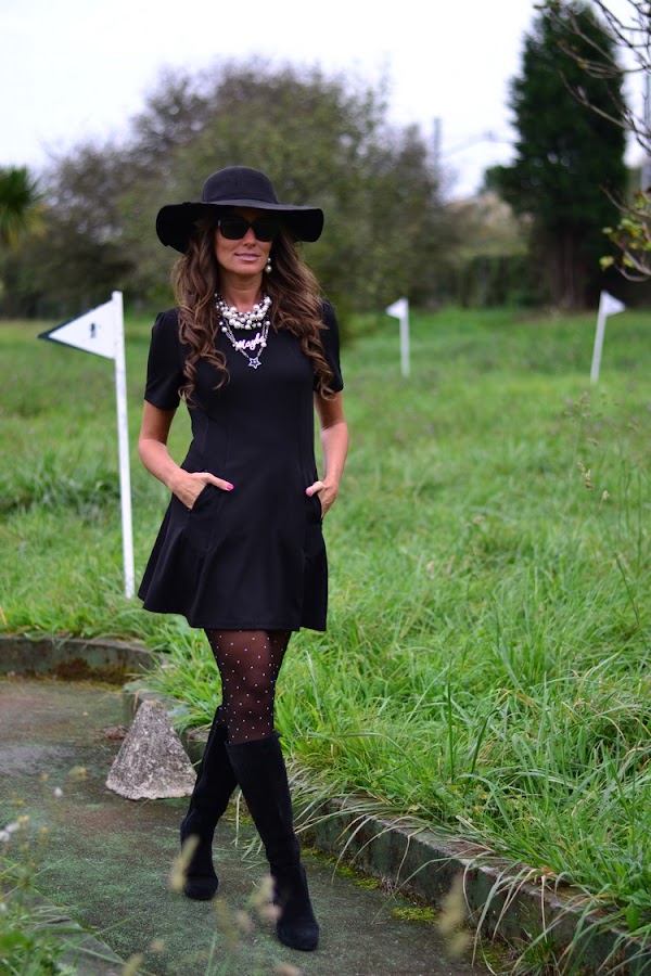 Hacía ya tiempo que tenía ganas del típico vestidito corto en color negro, un poco elástico. Un vestido que fuera sencillo, de manga corta y cuello redondo, con dos bolsillos delanteros y cierre de cremallera en la espalda. El caso es que no encontraba ninguno que se ajustase a lo que tenía en mi cabeza (que a priori no parece demasiado complicado) y que estuviese bien de precio, hasta que descubrí este modelo en SheIn de falda con vuelo que se acercaba bastante a mi idea inicial.