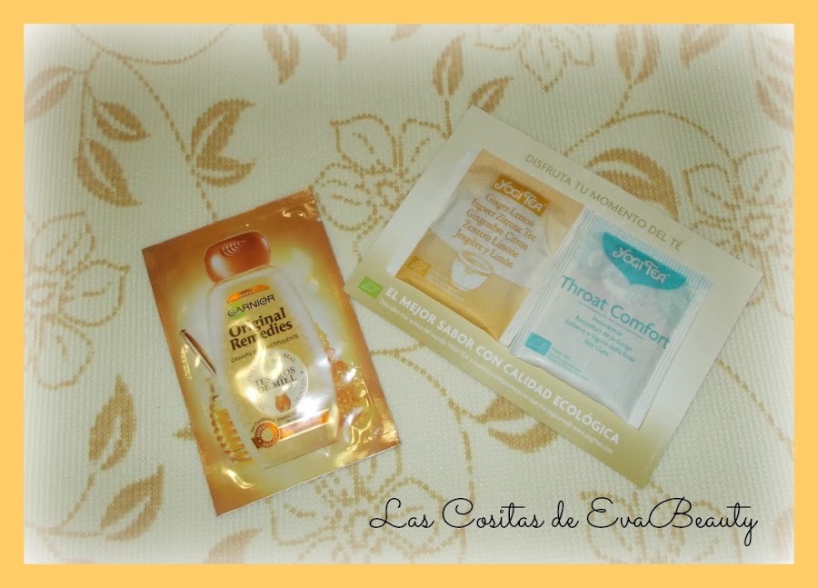 Como detalles por mi compra, me regalaron un par de sobres de té, yo encantadísima, porque adoro el té :), y también una muestra del champú Tesoros de miel de Garnier, genial para probarlo.
