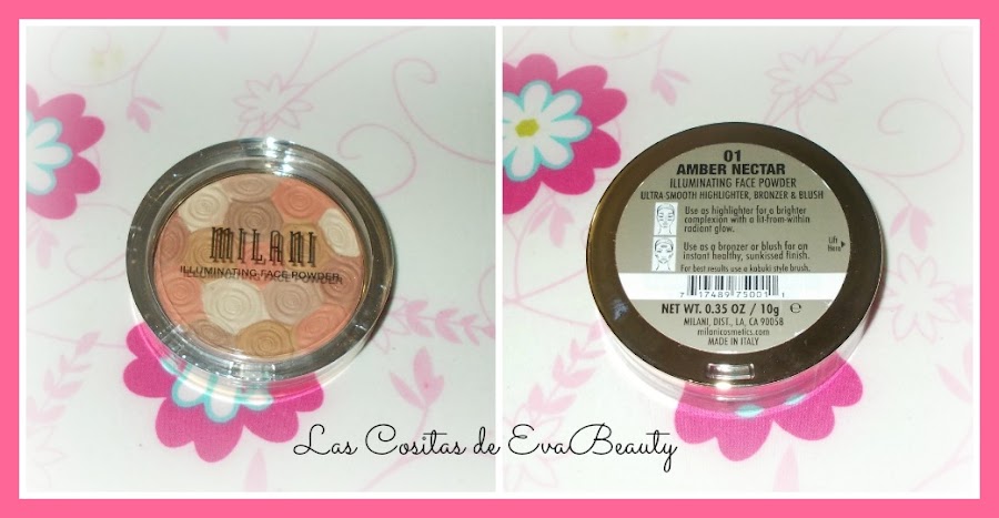 Tenía muchas ganas de probar algo de la marca MILANI, y decidí probar éste iluminador tan pero que tan bonito, que sirve también como colorete o bronceador, con ese relieve con rosas de distintos tonos beige, marrones, melocotón y dorado.