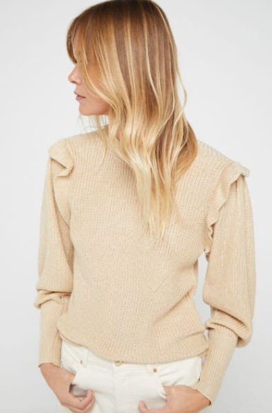 Hasta 50% de descuento hasta el 29 de Noviembre. En Cortefiel suele haber cosas muy originales. Por ejemplo me ha gustado este jersey metalizado con volantes en los hombros. Es muy ponible y los destellos le dan ese toque diferente.
